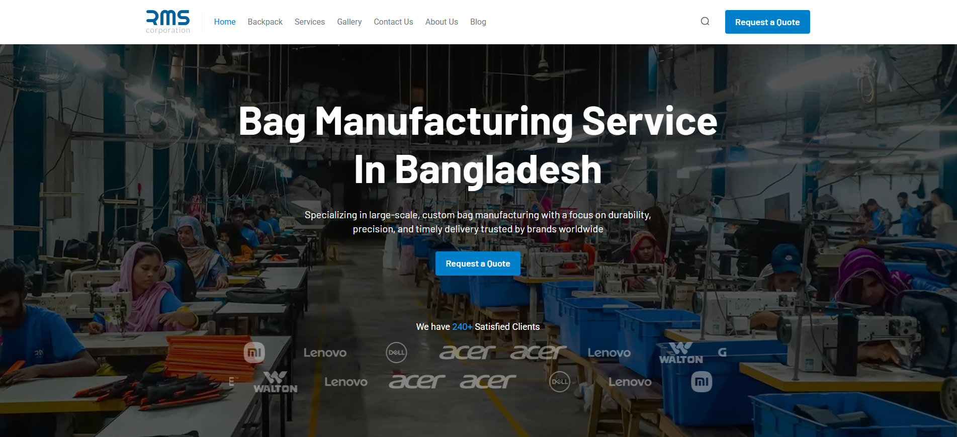 Designed and developed a modern, professional website for a bag manufacturing company based in Bangladesh. The goal was to create a strong online presence that highlights large-scale manufacturing capability, builds trust with international clients, and drives quote requests.