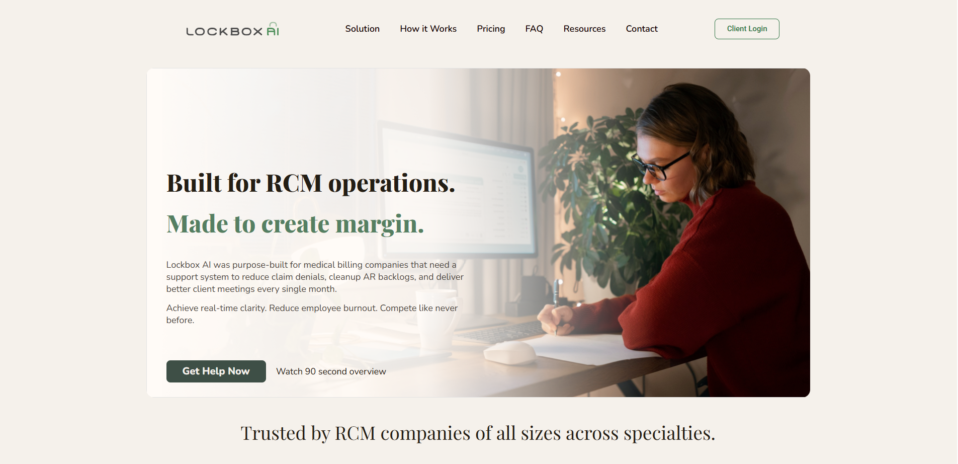 Designed a clean, conversion-focused website for an RCM SaaS platform. Built to clearly communicate value, build trust with medical billing companies, and drive demos and inquiries. The site features strong headline messaging, clear CTAs, responsive design.