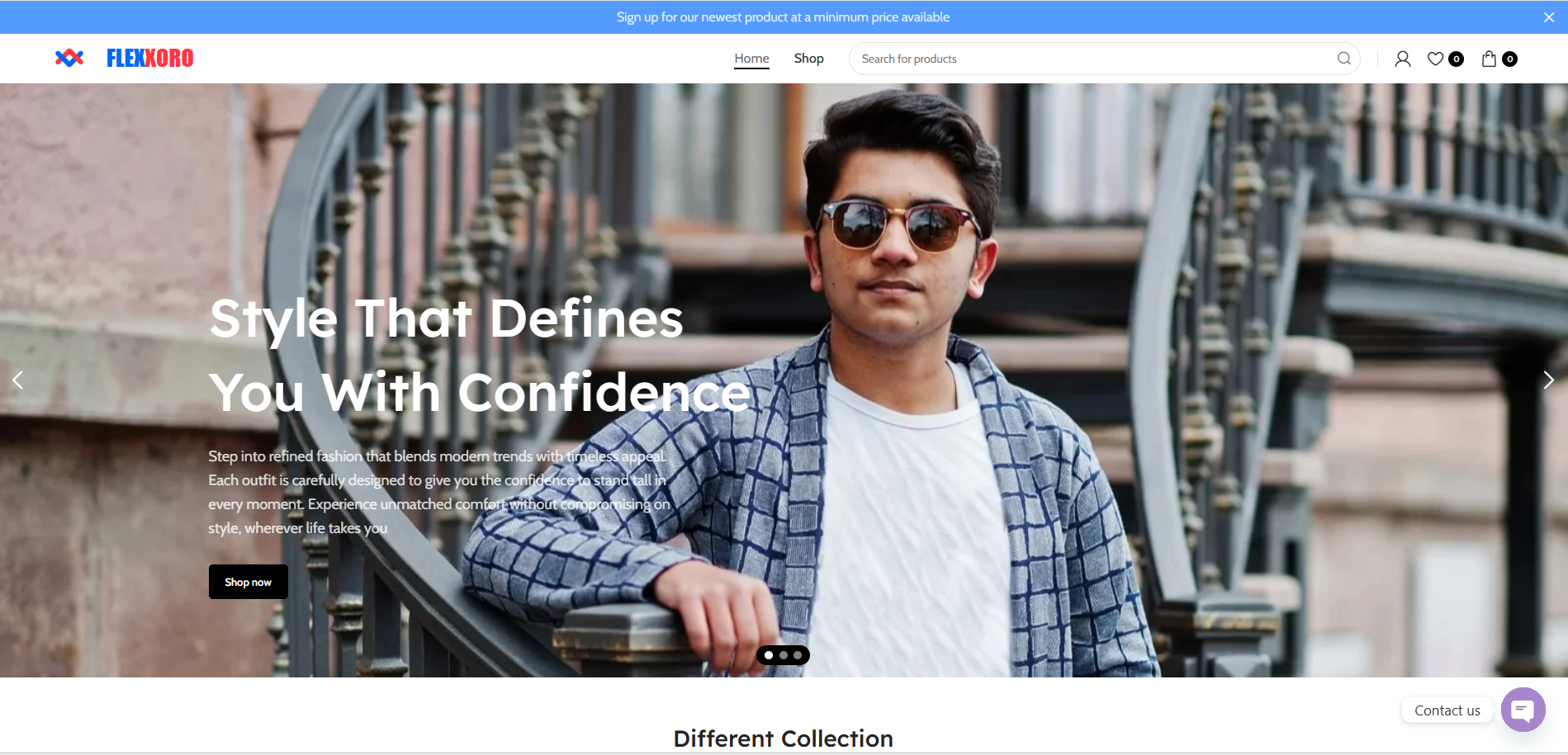 I designed a modern, responsive e-commerce homepage for FLEXXORO, a fashion brand focused on style, confidence, and modern trends. The website features a clean and visually appealing layout, optimized for both desktop and mobile devices.